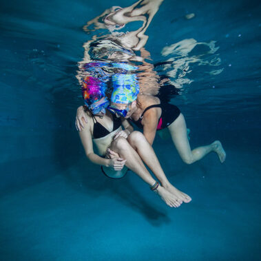 Aquavie 3 (22hrs): Apprentissage du massage sous l’eau. Le donneur et le receveur sont régulièrement en immersion de façon rythmique. Il se fait à l’aide d’un masque et/ou d’un pince-nez. Il s’agit de techniques avancées qui nécessitent une grande écoute et une adaptation au rythme respiratoire du client. Cette technique amène dans des états profonds de lâcher-prise. Prérequis : Aquavie 1, Aquavie 2 et avoir donné plusieurs massages dans l’eau à des clients.